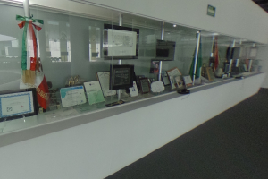 Vitrina donde se exhiben reconocimientos a labores posteriores al periodo presidencial.