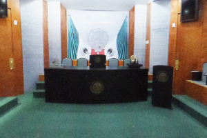 Réplica del Congreso de la unión. Espacio donde se reúnen los diputados y senadores para revisar iniciativas de ley. Como parte del programa "Presidente por un día", en esta sala se recrea la elección presidencial y toma de protesta.